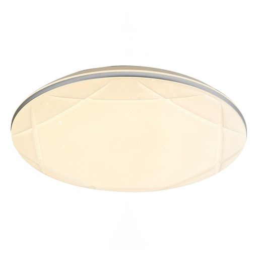 40cm átmérőjű, ezüst színű fém vázas mennyezeti lámpa fehér színű, csillagos égbolt effektes műanyag búrával, beépített, természetes fehér színhőmérsékletű LED fényforrással.