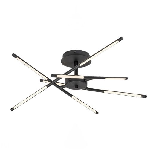 Fekete színű fém mennyezeti lámpa fehér acryl betétes pálcika búrával, meleg fehér színhőmérsékletű beépített LED fényforrással.