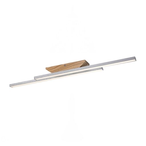 Világos fa és súrolt alumínium vázas mennyezeti lámpa műanyag betétes búrával, természetes fehér színhőmérsékletű beépített LED fényforrással.