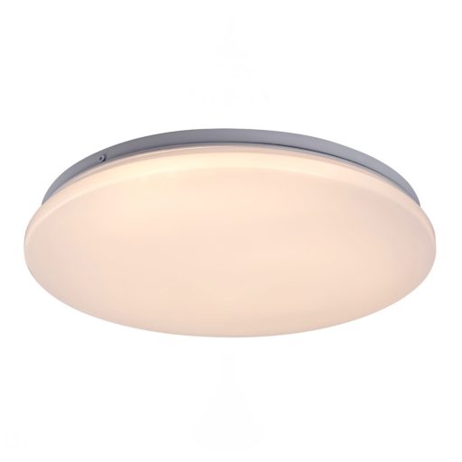 Fém vázas mennyezeti lámpa fehér színű műanyag búrával, meleg fehér színhőmérsékletű beépített LED fényforrással, 32cm átmérővel, mindössze 5,5cm-es vastagsággal.