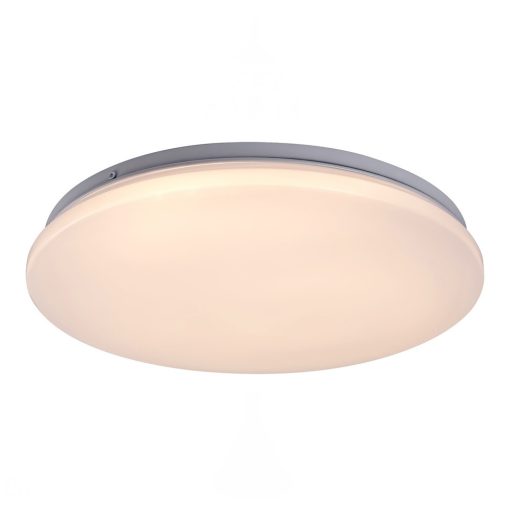 Fém vázas mennyezeti lámpa fehér színű műanyag búrával, meleg fehér színhőmérsékletű beépített LED fényforrással, 37,5cm átmérővel, mindössze 5,5cm-es vastagsággal.