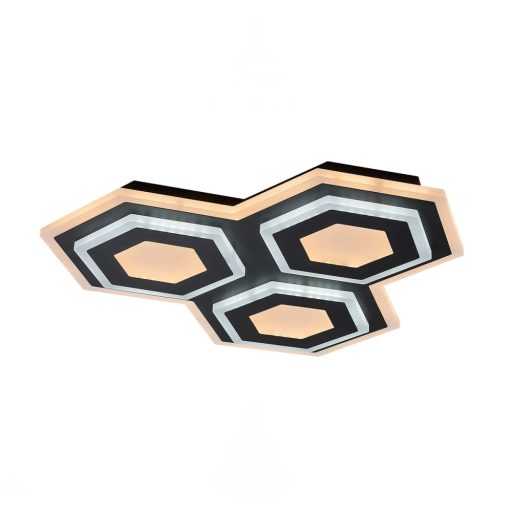 Az élénk, vidám megjelenésű Bitsi hármas mennyezeti lámpa a Rábalux saját tervezésű modellje. A három összekapcsolódó hatszögletű elemből álló lámpát azok figyelmébe ajánljuk, akik modern, izgalmas formatervezésű, egyszersmind nagy fényerejű modellt keresnek nappalijukba vagy hálószobájukba. A fekete és homoksárga színekben pompázó Bitsi fémből készül és fehér műanyagbúra egészíti ki. A mennyezeti lámpa beépített LED fényforrással rendelkezik, amelynek a teljesítménye 72 W, a lámpa fényereje 3200 lumen, a fényforrás fényereje 9100 lumen, színhőmérséklete pedig változtatható: 3000+6000 K kombináció állítható be. A Bitsi fényereje ugyancsak szabályozható – a színhőmérséklethez hasonlóan távirányító segítségével. Az ultravékony kialakítású mennyezeti lámpa mérete 415x415 mm, mennyezettől mért távolsága pedig mindössze 45 mm.