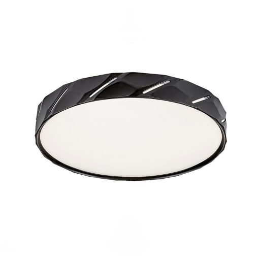 Fém vázas mennyezeti lámpa fekete és fehér színű műanyag búrával, természetes fehér színhőmérsékletű beépített LED fényforrással, 39cm átmérővel.