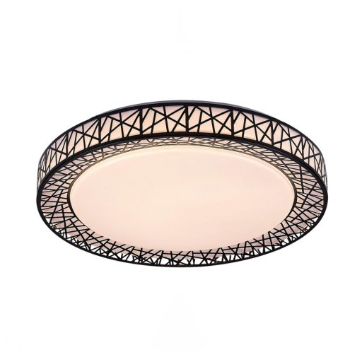 Fém vázas mennyezeti lámpa fekete dekoros, fehér színű műanyag búrával, beépített LED fényforrással. A lámpához távirányító tartozék mely segítségével állítható a lámpa fényereje és színhőmérséklete(3000-6500K). A lámpa továbbá éjszakai fény és memória funkcióval is rendelkezik.