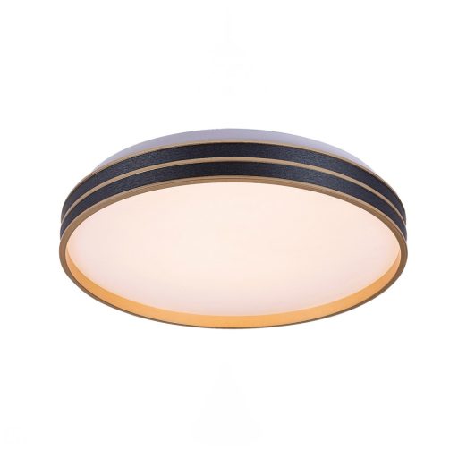 Matt fekete és arany színű fém vázas mennyezeti lámpa opálos műanyag búrával, beépített LED fényforrással. A lámpához távirányító tartozék mely segítségével állítható a lámpa fényereje és színhőmérséklete(3000-6500K). A lámpa továbbá éjszakai fény és memória funkcióval is rendelkezik.
