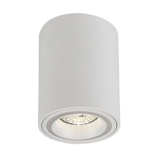 Fehér színű fém mennyezetre építhető fix spot lámpa fehér dekor gyűrűvel, 1db GU10-es foglalattal.
