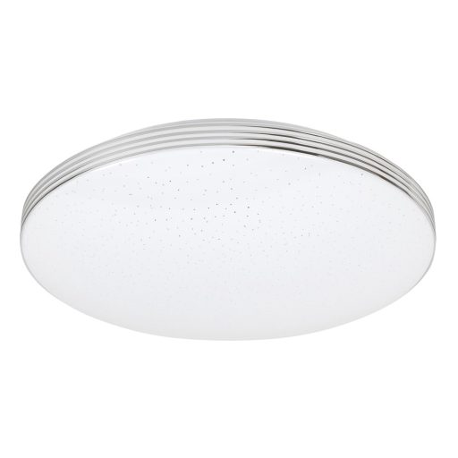 Fehér színű fém vázas mennyezeti lámpa króm dekor szegélyes, fehér, csillagos égbolt effektes műanyag búrával, természetes fehér színhőmérsékletű beépített LED fényforrással.
