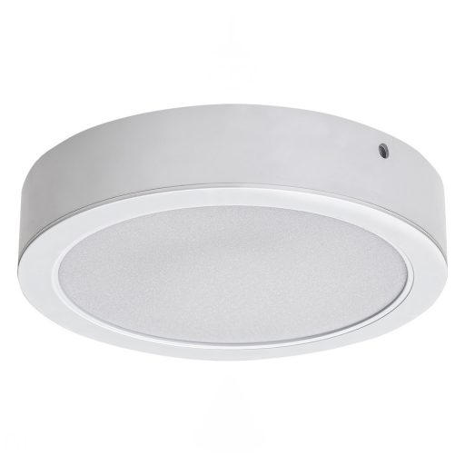 16,5cm átmérőjű, fehér színű műanyag mennyezetre szerelhető lámpa meleg fehér színhőmérsékletű beépített LED fényforrással.
