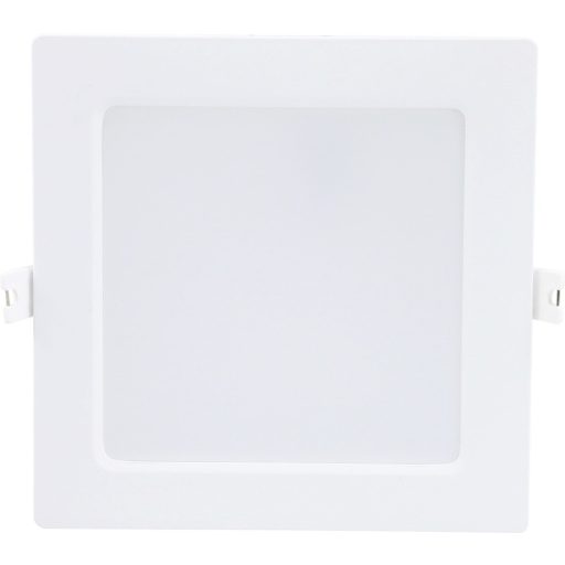 17cm széles, fehér színű műanyag mennyezetbe építhető lámpa természetes fehér színhőmérsékletű beépített LED fényforrással.