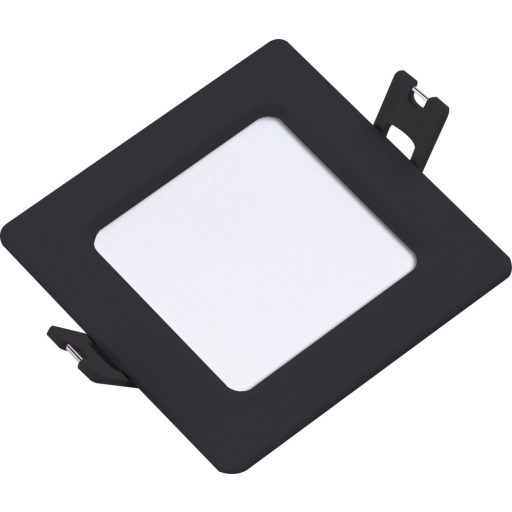 9cm széles, fehér és fekete színű műanyag mennyezetbe építhető lámpa természetes fehér színhőmérsékletű beépített LED fényforrással.