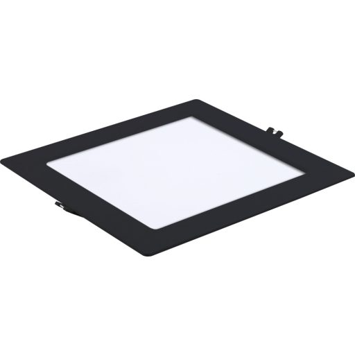 22cm széles, fehér és fekete színű műanyag mennyezetbe építhető lámpa természetes fehér színhőmérsékletű beépített LED fényforrással.