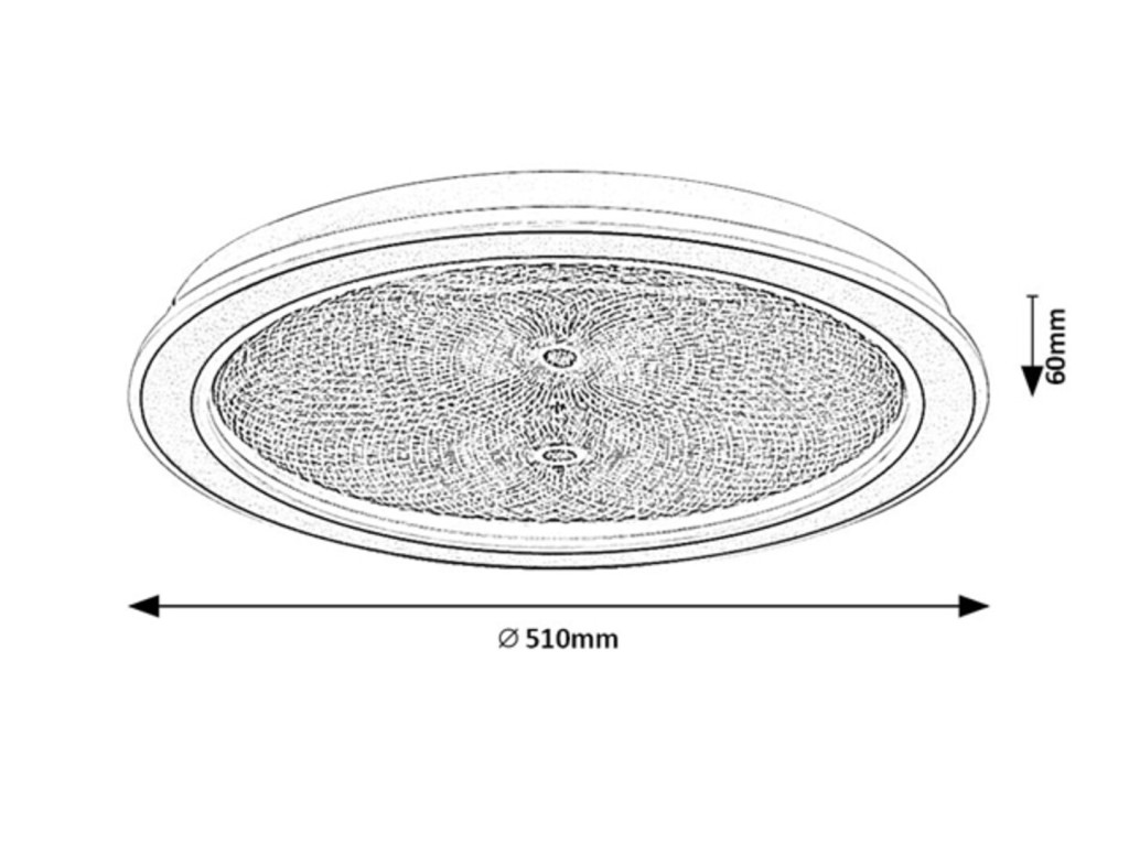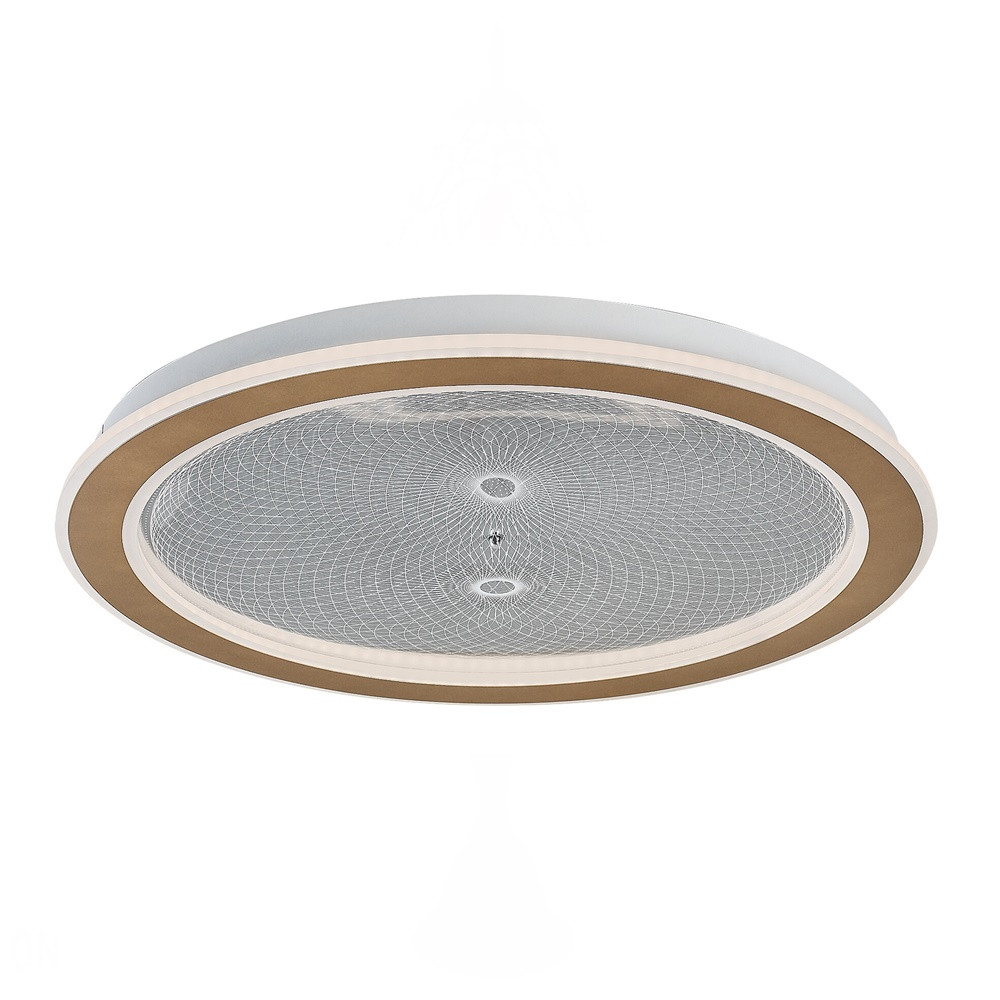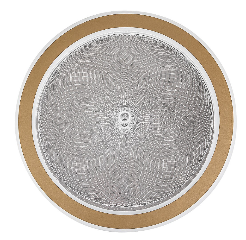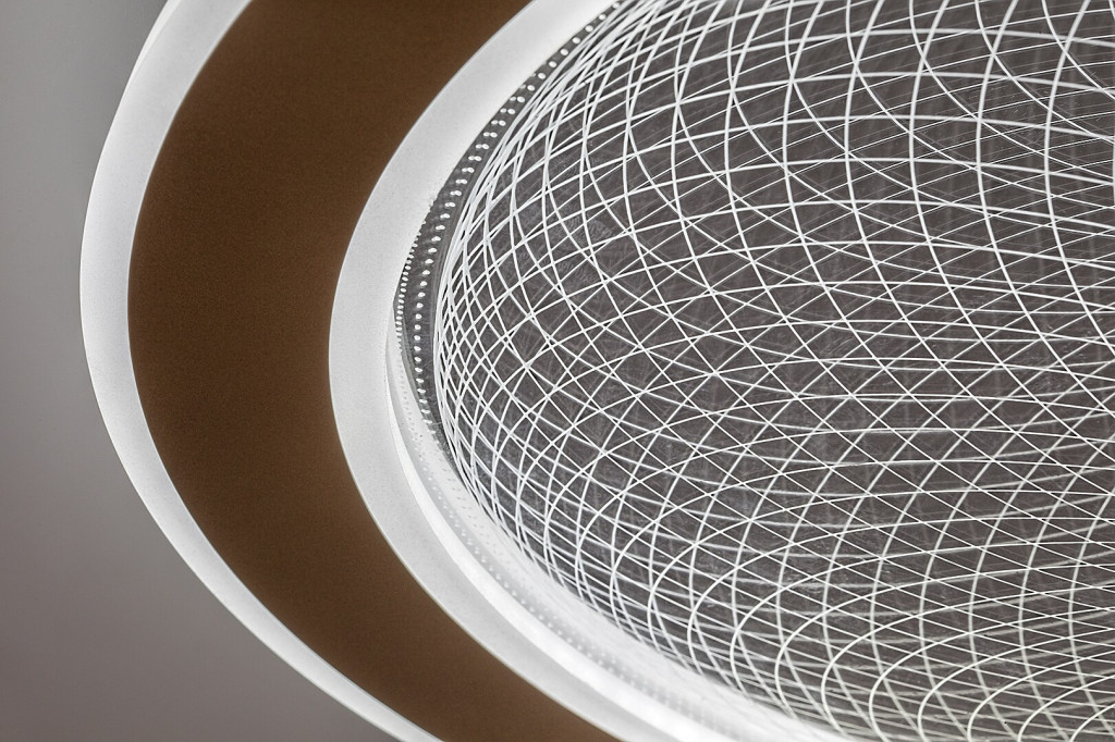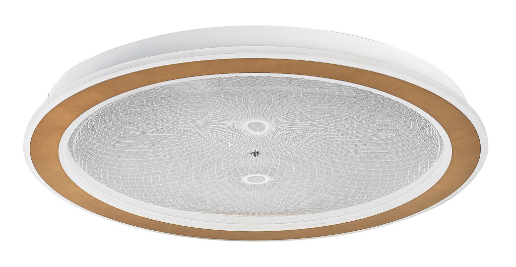 Arany színű fém vázas mennyezeti lámpa, dekoratív, átlátszó acryl búrával, melynek gravírozott mintája felkapcsoláskor világít. A lámpa beépített LED fényforrással rendelkezik. A lámpához távirányító tartozik, mely segítségével állítható a LED fényereje, a színhőmérséklete (3000-6500K, azaz melegtől-hideg fehér). Szintén a távirányítóval időzíthető, illetve éjszakaia fény funkióval és memória funkcióval is rendelkezik.