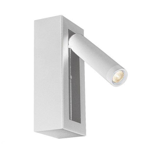 Fehér színű fém falikar állítható fejjel, meleg fehér színhőmérsékletű, kis teljesítményű beépített LED fényforrással. A lámpatesten kapcsoló található, megy a lámpafej kinyitásakor felkapcsolja a lámpát, lehajtáskor pedig lekapcsolja. Ideális választás hálószobába, mikor este kevesebb fényre van szükség az éjszakára készülődve.