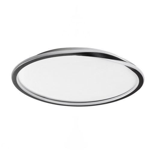 Fekete színű fém vázas mennyezeti lámpa fehér színű szilikon betétes, elől csavart búrával, természetes fehér színhőmérsékletű beépített LED fényforrással.
