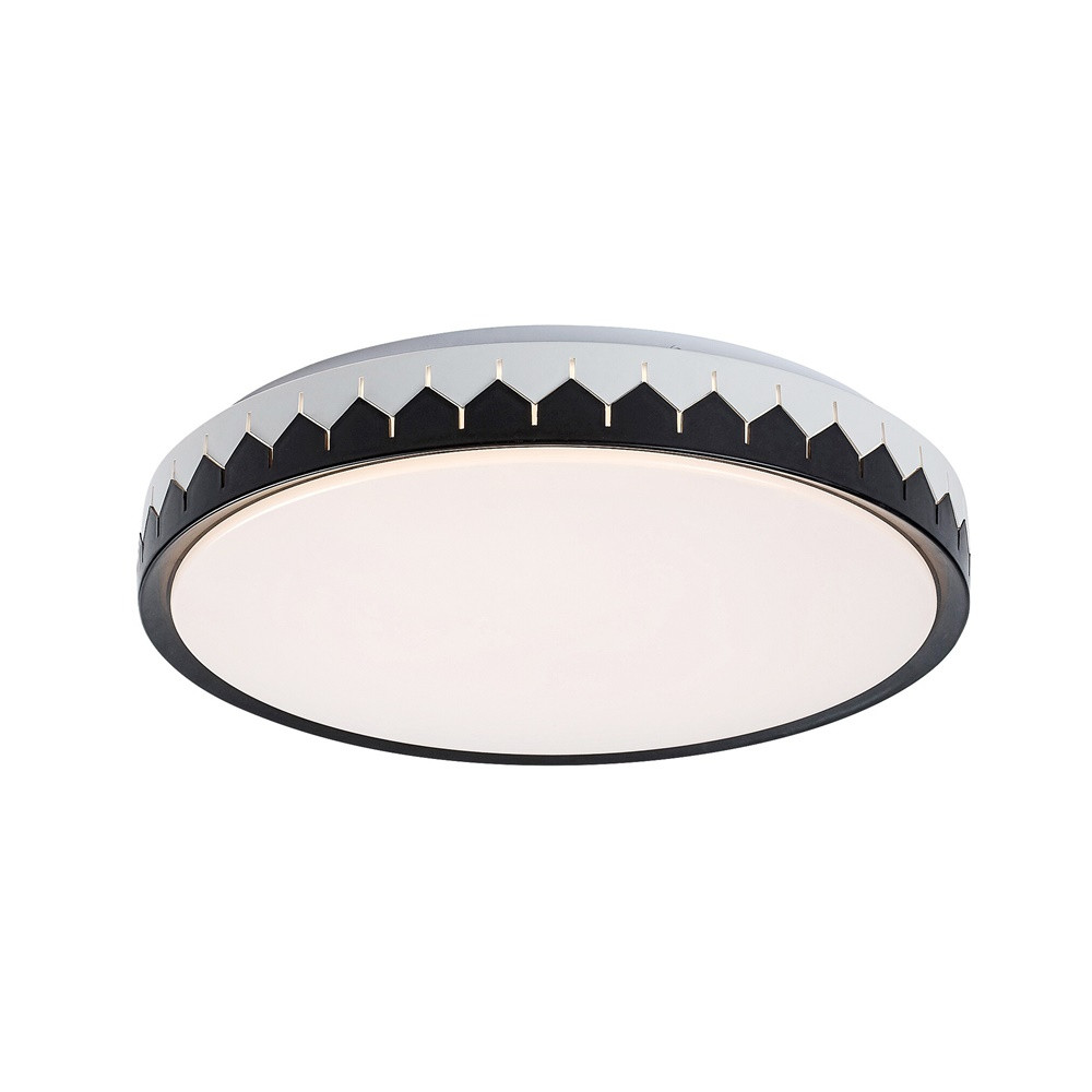 40cm átmérőjű, szürke és fekete színű fém vázas mennyezeti lámpa fehér színű műanyag búrával, beépített LED fényforrással. A lámpához távirányító tartozik, mely segítségével állíható a lámpa fényereje, színhőmérséklete (3000-6500K, azaz meleg-hideg fehér). A lámpa továbbá időzítő, memória funkcióval is rendelkezik.