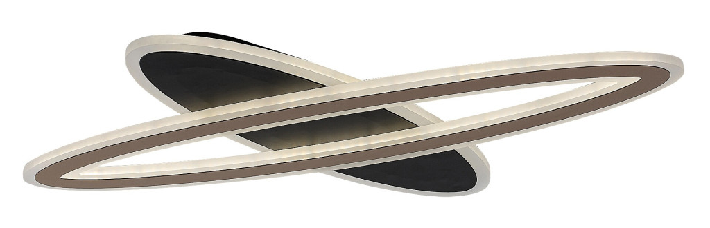 Fekete színű fém vázas mennyezeti lámpa arany színű fém és fehér akril búrával, beépített LED fényforrással. A lámpához távirányító tartozik, mely segítségével állíható a lámpa fényereje, színhőmérséklete (3000/4000/6000K, azaz meleg/természetes/hideg fehér). A lámpa továbbá időzítő, memória és éjszakai fény funkcióval is rendelkezik. A lámpa különlegessége a kevert színhőmérséklet beállítás a lámpa különböző részein.