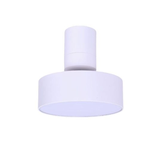 Fehér színű fém 14cm átmérőjű mennyezeti lámpa fehér műanyag betéttel, meleg fehér színhőmérsékletű beépített LED fényforrással, billenthető fejjel.