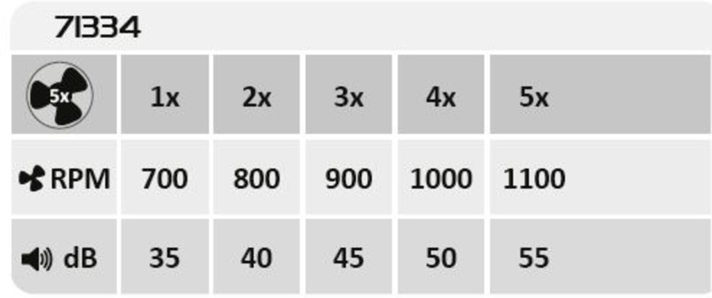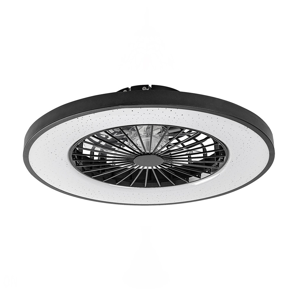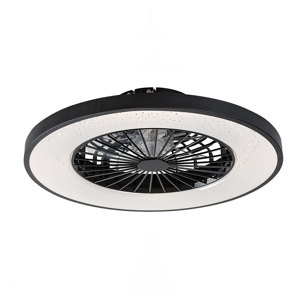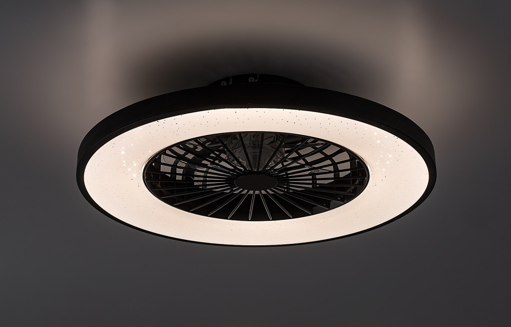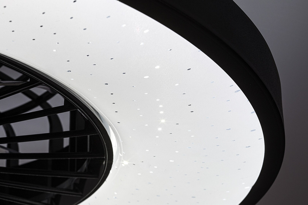 Ventilátoros mennyezeti lámpa fehér és fekete színben fém vázzal és csillagos égbolt effektes műanyag búrával, beépített LED fényforrással. A lámpához távirányító tartozik, mely segítségével állíható a lámpa fényereje, színhőmérséklete (3000-6500K, azaz meleg-hideg fehér). A lámpa továbbá időzítő, memória és éjszakai fény funkcióval is rendelkezik. A színhőmérséklet fali kapcsolóval is állítható. A lámpa közepén 20W teljesítményű, 5 fokozatban állítható ventilátor található percenkénti max. 1100 fordulatszámmal, 55dB hangkibocsátással. A ventilátor 33 négyzetméteres helyiségbe elegendő.