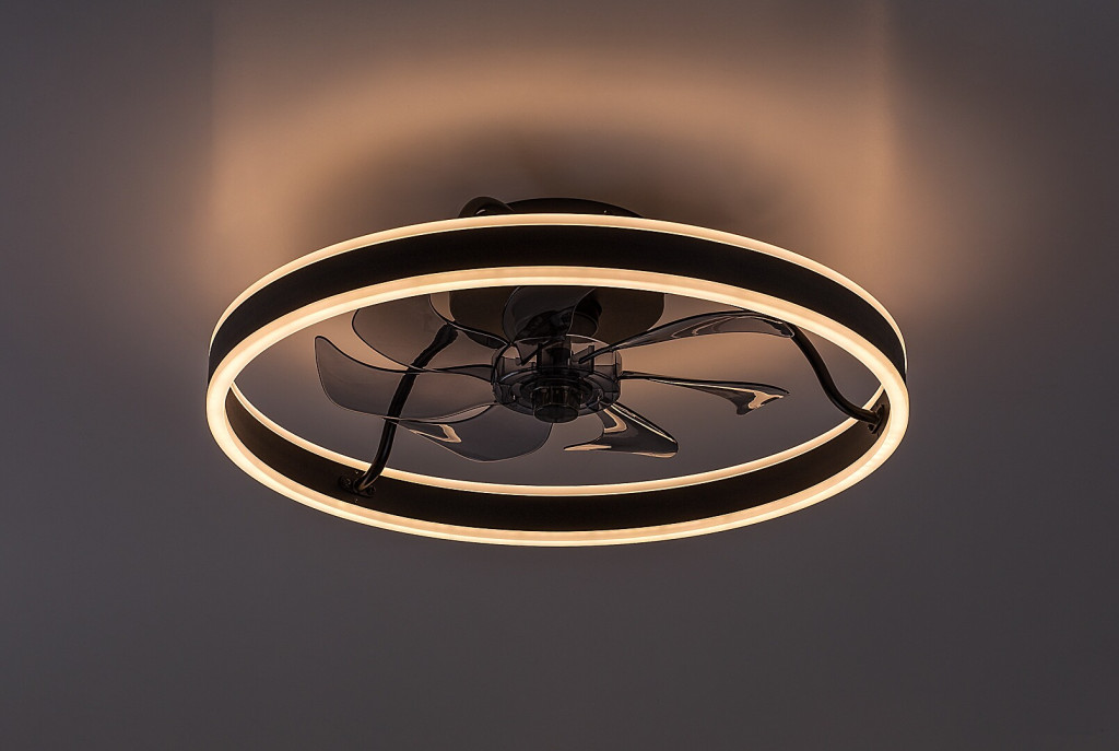 Ventilátoros mennyezeti lámpa fehér és fekete színekben fém vázzal és műanyag búrával, beépített LED fényforrással. A lámpához távirányító tartozik, mely segítségével állíható a lámpa fényereje, színhőmérséklete (3000/4000/6000K, azaz meleg/terészetes/hideg fehér). A lámpa továbbá időzítő, memória és éjszakai fény funkcióval is rendelkezik. A színhőmérséklet wifin keresztül telefonnal, vagy a fali kapcsolóval is állítható. A lámpa közepén 12W teljesítményű ventilátor található percenkénti 820-as fordulatszámmal, 52dB hangkibocsátással. A ventilátor 12 négyzetméteres helyiségbe elegendő.