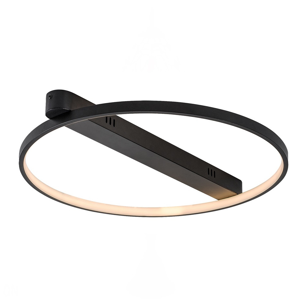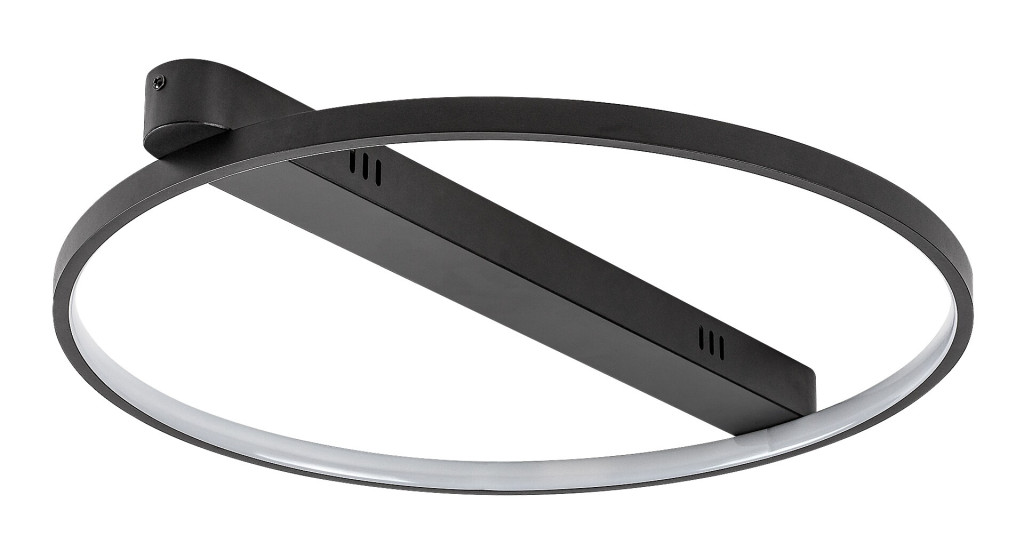 Fekete színű fém vázas mennyezeti lámpa gyűrű alakú, szilikon betétes búrával, meleg fehér színhőmérsékletű beépített LED fényforrással.