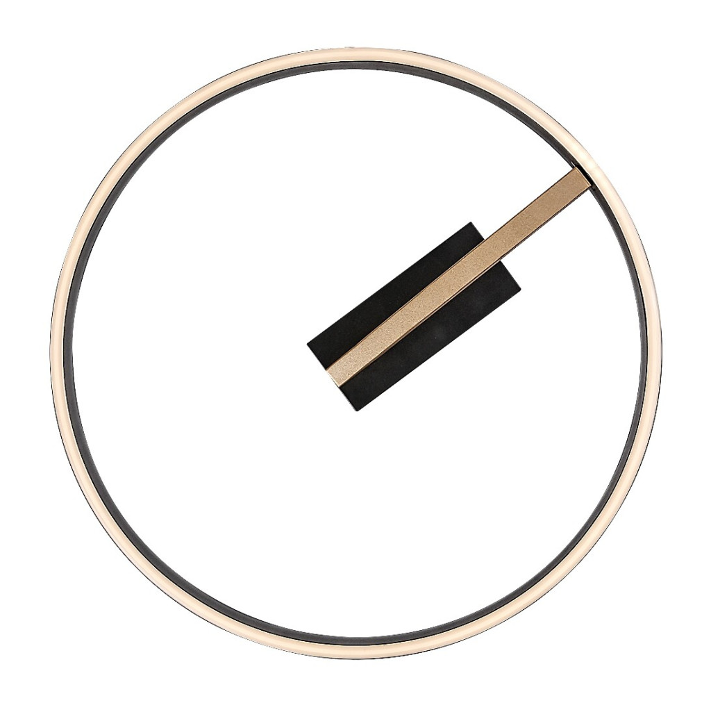 Fekete és arany színű fém mennyezeti lámpa műanyag betétes búrával, meleg fehér színhőmérsékletű beépített LED fényforrással.