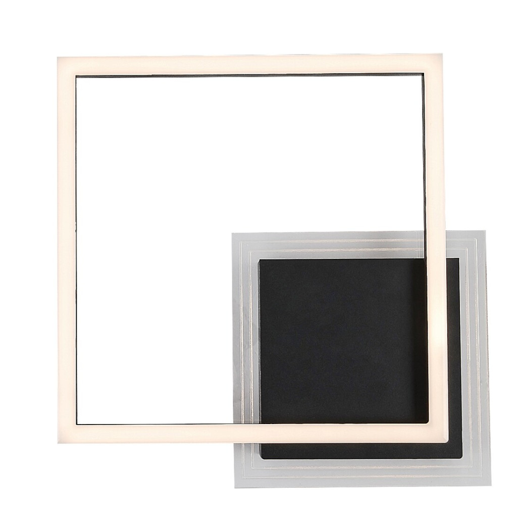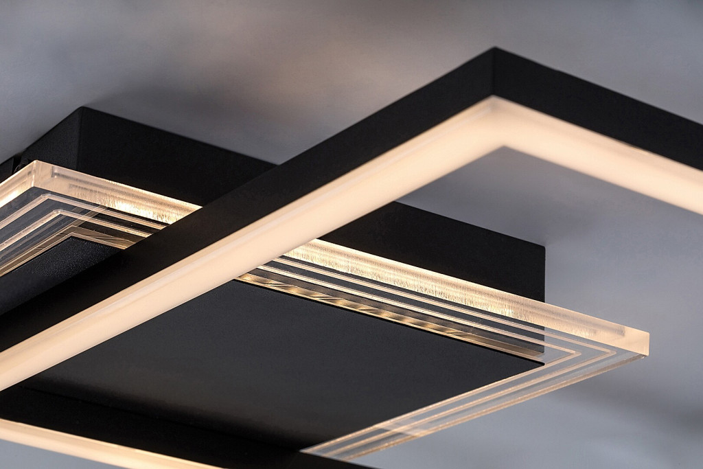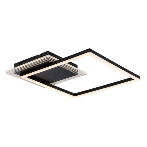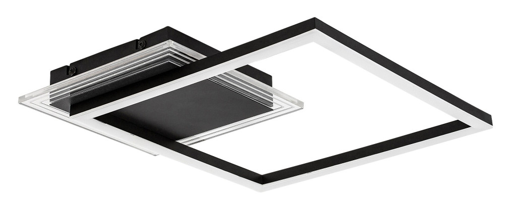 Fekete színű fém mennyezeti lámpa fehér acryl betétes búrával, meleg fehér színhőmérsékletű beépített LED fényforrással.