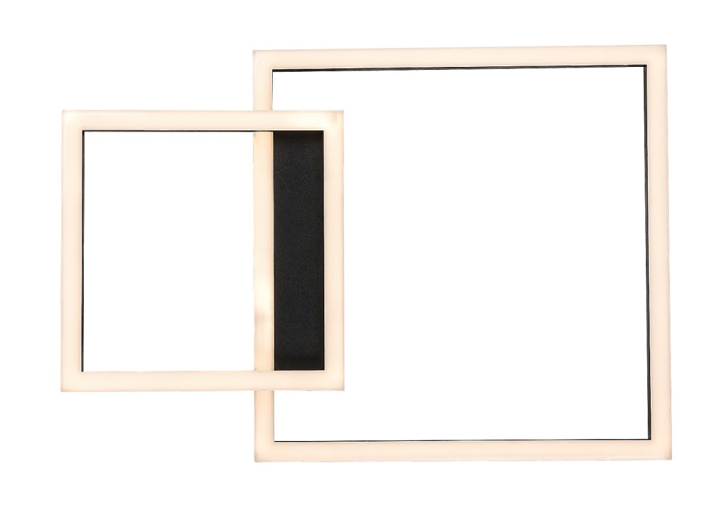 Fekete színű fém mennyezeti lámpa fehér műanyag betétes búrával, meleg fehér színhőmérsékletű beépített LED fényforrással.