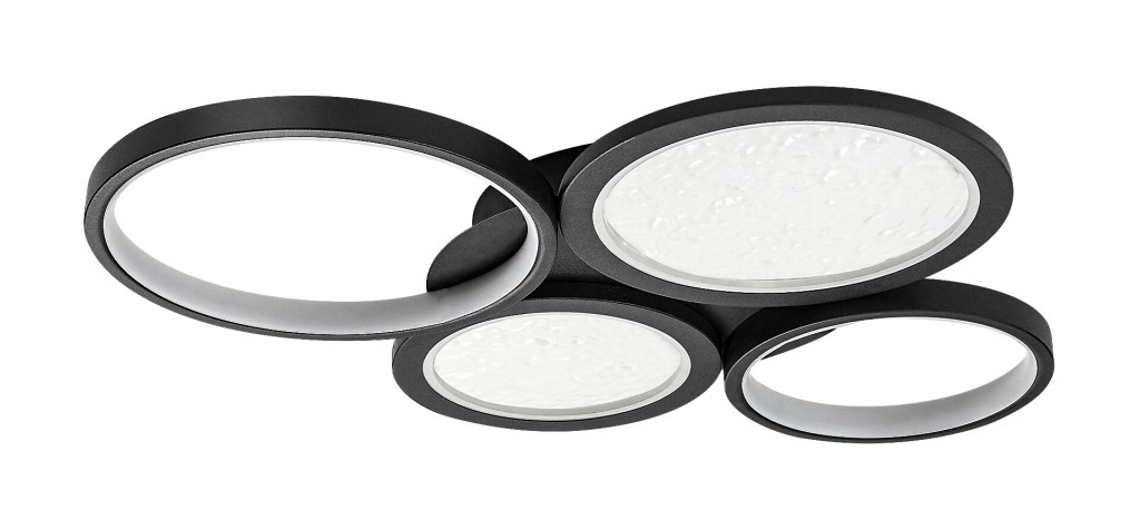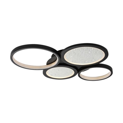 Fekete színű fém mennyezeti lámpa fehér műanyag betétes búrával, beépített LED fényforrással. A lámpa közepén lévő mintás, domború részen a fény megtörik, így különleges megjelenést biztosít a lámpa számára. A lámpához távirányító tartozik, mely segítségével állíható a lámpa fényereje, színhőmérséklete (3000-6500K, azaz meleg-hideg fehér). A lámpa továbbá időzítő, memória és éjszakai fény funkcióval is rendelkezik.
