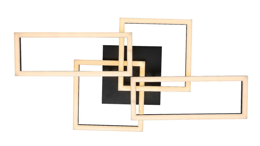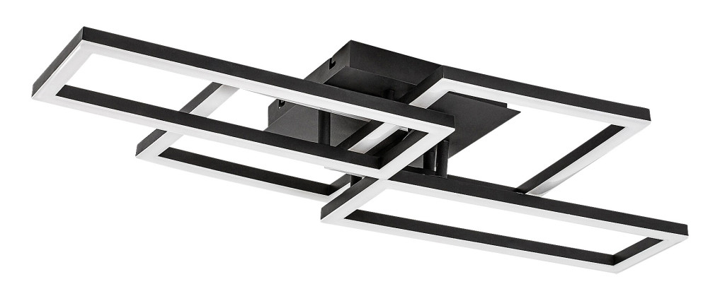 Fekete színű fém mennyezeti lámpa fehér műanyag betétes búrával, beépített LED fényforrással. A lámpához távirányító tartozik, mely segítségével állíható a lámpa fényereje, színhőmérséklete (3000-6500K, azaz meleg-hideg fehér). A lámpa továbbá időzítő, memória és éjszakai fény funkcióval is rendelkezik.