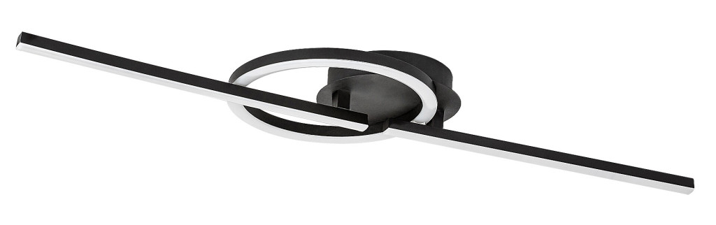 Fekete színű fém mennyezeti lámpa fehér műanyag betétes búrával, természetes fehér színhőmérsékletű beépített LED fényforrással.