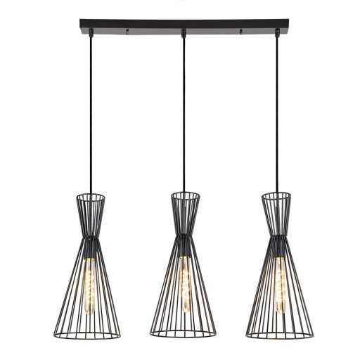 Matt fekete színű fém függeszték lámpa kiszélesedő, hengeres fémrács búrával, E27-es foglalattal. A lámpát fényforrás nélkül szállítjuk.