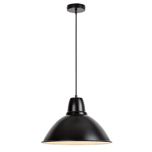 Matt fekete színű fém függeszték lámpa belül fehér színű fém búrával, E27-es foglalattal. A lámpát fényforrás nélkül szállítjuk.