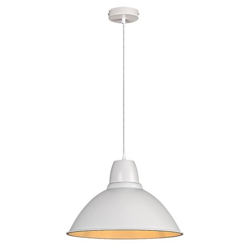 Matt fehér színű fém függeszték lámpa E27-es foglalattal. A lámpát fényforrás nélkül szállítjuk.