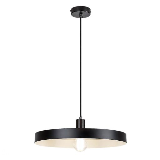 Matt fekete színű fém függeszték lámpa belül fehér színű fém búrával, E27-es foglalattal. A lámpát fényforrás nélkül szállítjuk.