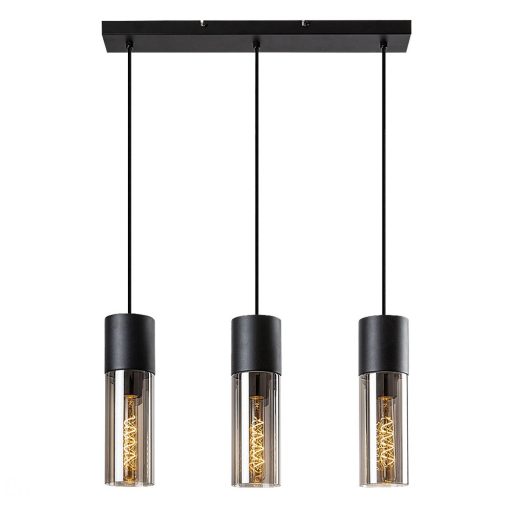 Fekete színű fém vázas függeszték lámpa henger alakú, füstös üveg búrával, E27-es foglalattal. A lámpa dekor, vagy filament fényforrással mutat a legjobban. A lámpát fényforrás nélkül szállítjuk.