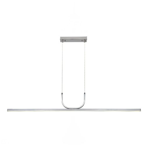 Króm színű fém vázas függeszték lámpa fehér színű acryl betétes búrával, meleg fehér színhőmérsékletű beépített LED fényforrással.