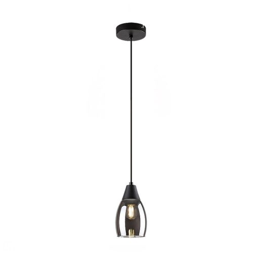 Fekete színű fém vázas függeszték lámpa füstös üveg búrával, E27-es foglalattal.