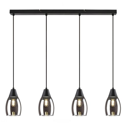 Fekete színű fém vázas függeszték lámpa füstös üveg búrával, E27-es foglalattal.