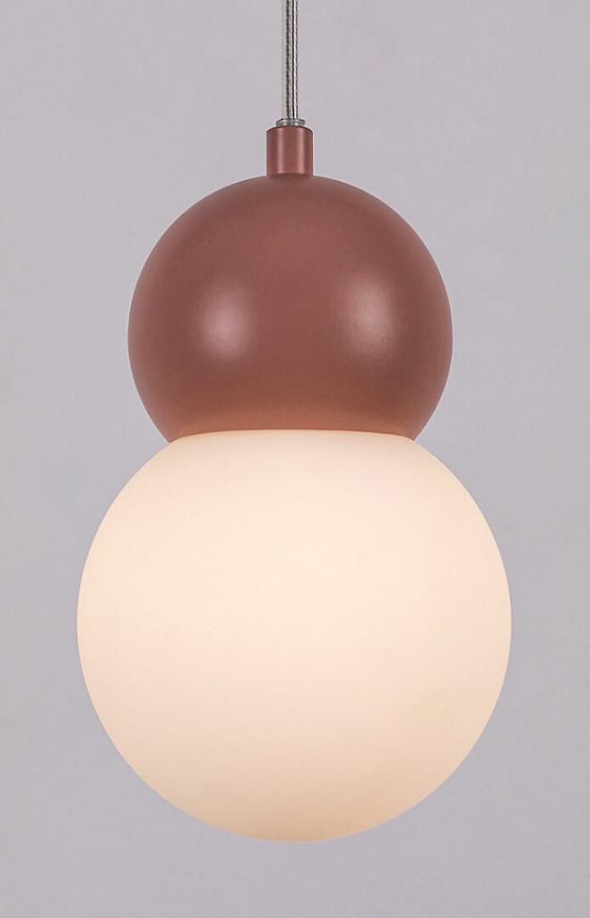 Barackos rózsaszínű fém vázas függesztett lámpa fehér színű, 12cm átmérőjű függesztett lámpa 1db G9-es foglalattal.