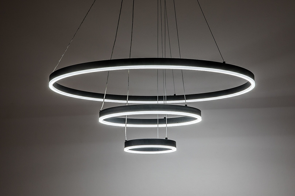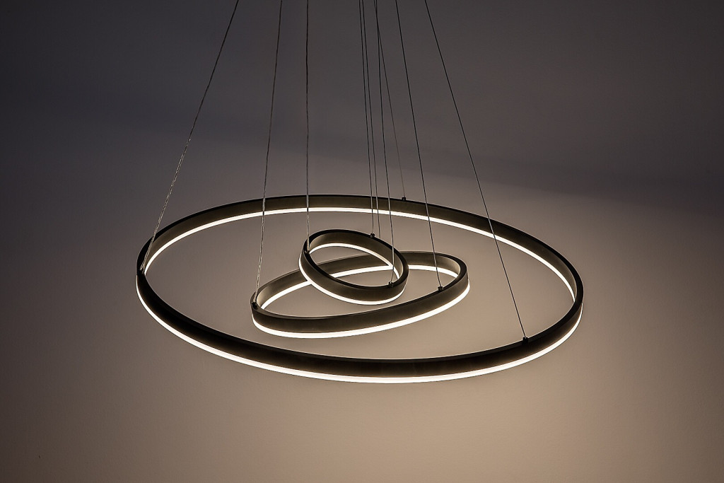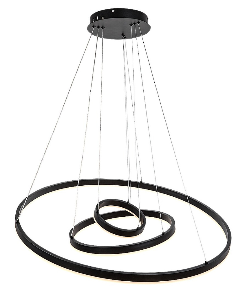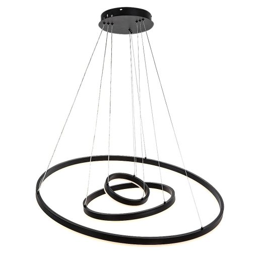 Fekete színű fém vázas függesztett lámpa gyűrű alakú, szilikon betétes búrával, beépített LED fényforrással. A lámpához távirányító tartozik, mely segítségével állítható a LED fényereje, a színhőmérséklete (3000-6500K, azaz melegtől-hideg fehér). Szintén a távirányítóval kapcsolható éjszakaia fény funkióval is rendelkezik.