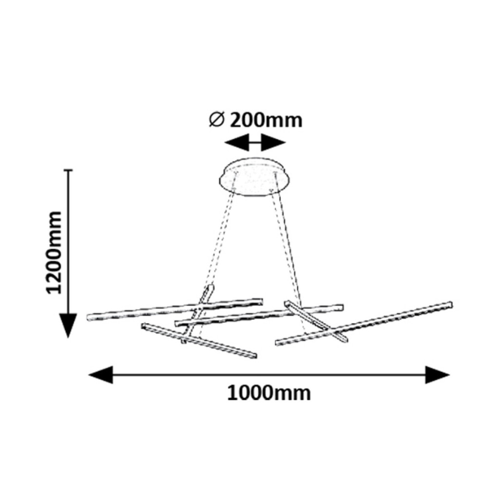 Fekete színű fém vázas függesztett lámpa arany színű fém alapon fehér műanyag betétes búrával, beépített LED fényforrással. A lámpához távirányító tartozik, mely segítségével állíható a lámpa fényereje, színhőmérséklete (3000-6500K, azaz meleg-hideg fehér). A lámpa továbbá időzítő, memória és éjszakai fény funkcióval is rendelkezik.