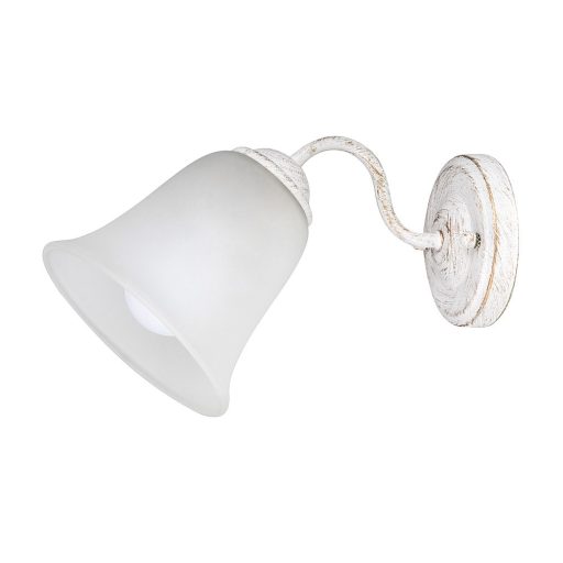 Klasszikus stílusú fali lámpa 1 db foglalattal. 30 cm kinyúlású, 17 cm magas, antik fehér színű fém lámpatest opálüveg lámpabúrával, IP20-as védettséggel. A lámpatest E-27-es foglalatkialakítású, max. 40W teljesítményű energiatakarékos izzóval is használható.