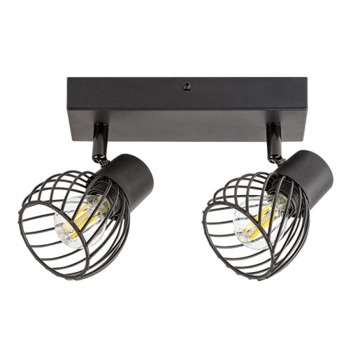Matt fekete színű műanyag spot lámpa rácsos búrával, állítható fejjel, E14-es foglalattal. A lámpát fényforrás nélkül szállítjuk.