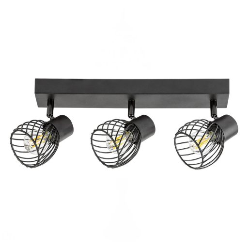 Matt fekete színű műanyag spot lámpa rácsos búrával, állítható fejjel, E14-es foglalattal. A lámpát fényforrás nélkül szállítjuk.