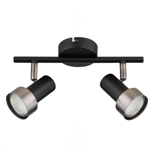 Matt fekete színű fém spot lámpa ezüst gyűrű dekorral, állítható fejjel, GU10-es foglalattal. A lámpát fényforrás nélkül szállítjuk.