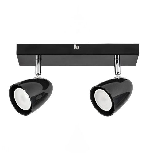 Fekete és króm színű fém vázas spot lámpa fényes műanyag búrával, mozgatható fejjel, GU10-es foglalattal.
