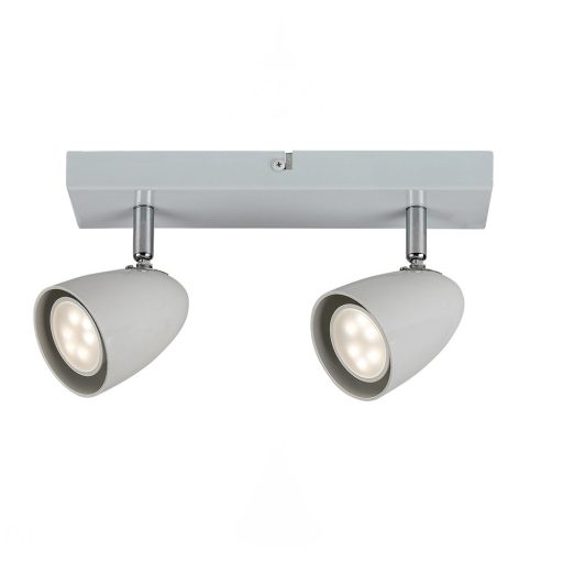 Fehér és króm színű fém vázas spot lámpa fényes műanyag búrával, mozgatható fejjel, GU10-es foglalattal.