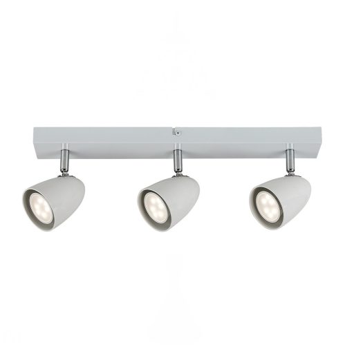 Fehér és króm színű fém vázas spot lámpa fényes műanyag búrával, mozgatható fejjel, GU10-es foglalattal.