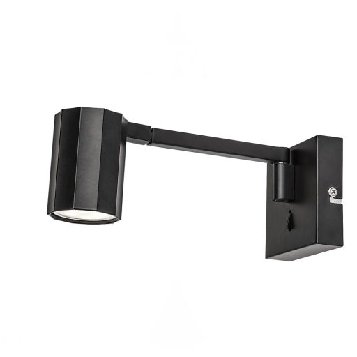 Fekete színű fém spot lámpa 10 szögletű dekoratív mozgatható fejjel és karral, GU10-es foglalattal, lámpatesten elhelyezett kapcsolóval.