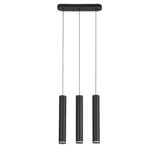 Fekete színű fém függesztett lámpa fehér acryl betétes búrával, GU10-es foglalattal.